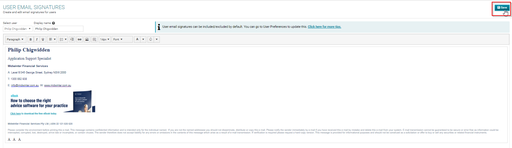 Step 3) Once you have successfully added in everything for your signature you simply need to select save.